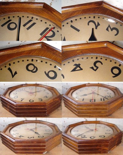 1930-40's "Super-DECO" Wood Octagon Wall Clock
