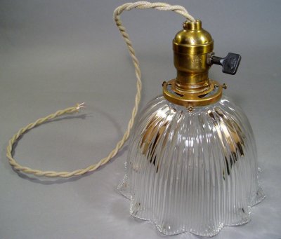 1920-30's "HOLOPHANE" Ribbed Glass Pendant Lamp