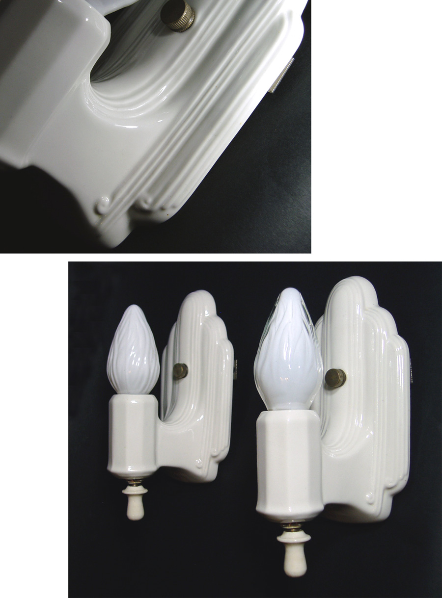 アメリカ製1930〜40年代の磁器製キャンドルランプ(ブラケットランプ)のペアセットです。