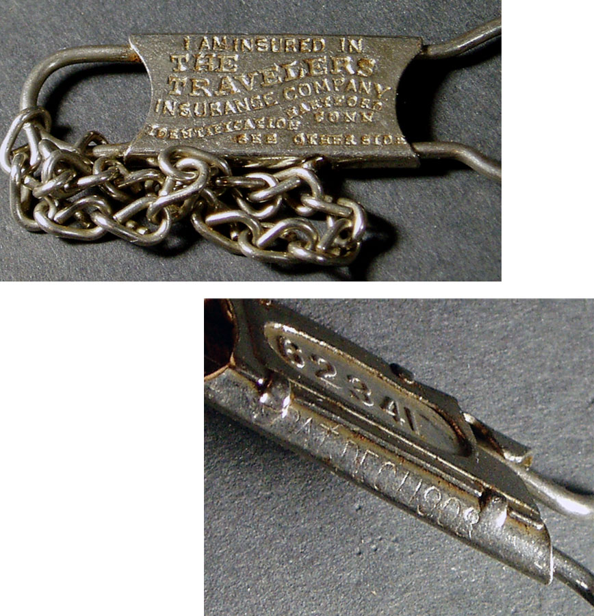 1910〜20年代頃の"Travelers Insurance Co...."と刻印が入っているキーホルダーです。
