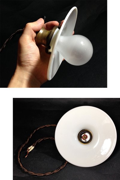 1920〜30年代頃の、小振りなミルクガラスシェードのペンダントライトです。