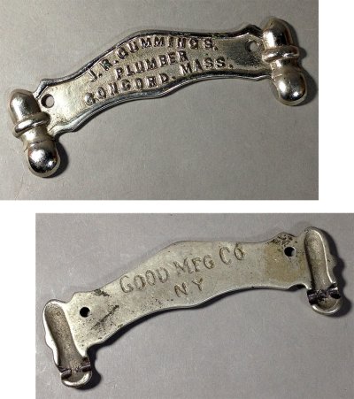 トップパーツはキャストブラス(真鍮 - 鋳造)製で『J.R.GUMMINGS. PLUMBER ... 』と水回りアイテムらしく、配管工からの依頼によるアドバタイジングが凸凹のエンボスで ダイナミック" に入っておりかっこいいですね。