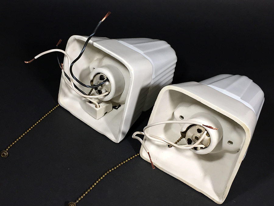 アメリカ製1930年代頃の陶器製ベースのバスルームランプです。