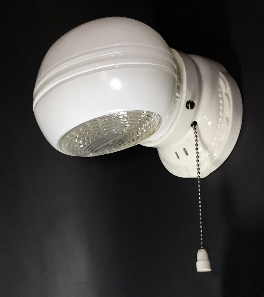 アメリカ製1930〜40年代頃の陶器製ベースのバスルームランプです。