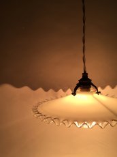 非常に "フラット" なペチコートシェードはフランス製らしいクリア&ミルクガラスのコンビです。
