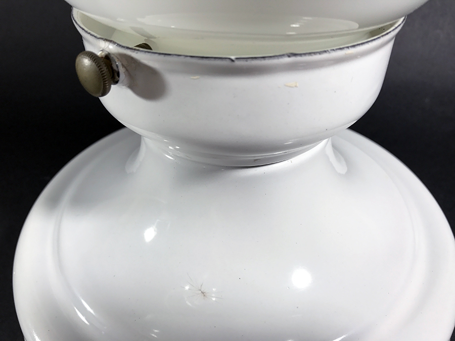 また、今回の商品の売りは、なんといっても>> このタイプでは初めての入荷となる 白いホーロー製【スチール - 焼き付け塗装】のベースです。シェードと合わせても重さがさほど無いという点も、安全面を考えると良いですね。