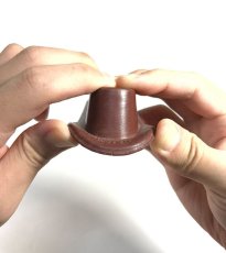 当時の硬質ゴムでできております。おそらく未使用品で弾力はあるもののはございますが、画像のようにかなり力を入れて逆反りさせると、薄いフチの部分にのみ細かいヒビが見えるため、経年による素材のかすかな硬化はあるようです。でも、まぁ(たぶんですが)まだまだ普通のドア用になら使用できるかと思います。
