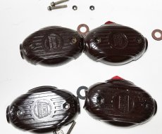 1930〜40年代頃のアメリカ【HEMCO】社製 ベイクライト製(焦げ茶 × ワイレッドボタン)。かなり珍しいデザインの中間スイッチです。