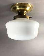 1930〜40年代頃のアメリカ製ミルクグラスシェード × 真鍮製ベースのシーリングライトです。