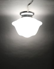 1920〜40年代頃のアメリカ製ミルクグラスシェード × クロムメッキベースのシーリングライトです。