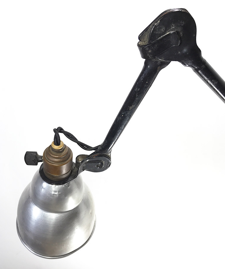 残念ながらシェードはオリジナルではございませんが、ミニタイプであるN°1056とほぼ同じ大きさの小ぶりなシェードとなります。Grasのデザインにマッチしている綺麗なフォルムをしておりますのでこれはこれでアリかと思います。アルミ表面も経年の曇りなどがあり雰囲気がよく、内部はリフレクション効果を狙いペイント済みでので、通常よりも綺麗な光が照射できております。