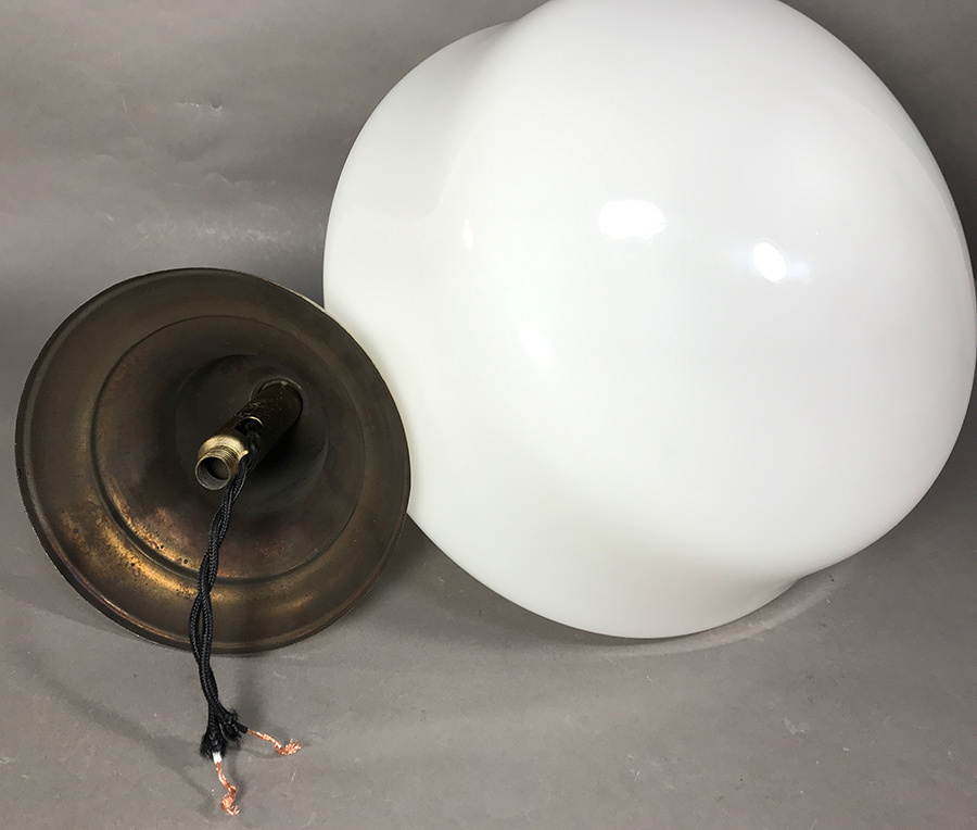 1930年代頃のアメリカ製ミルクグラスシェード × 真鍮製ベースのシーリングライトです。