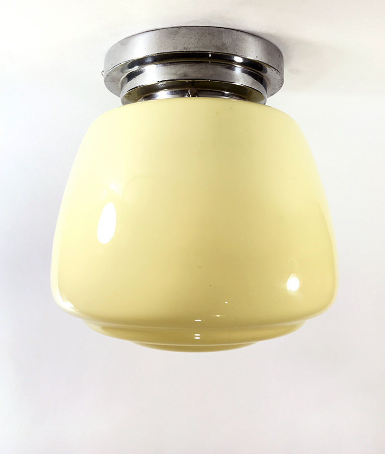 1930〜40年代頃のドイツ製ガラスシェード × クロムメッキベースのシーリングライトです。