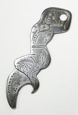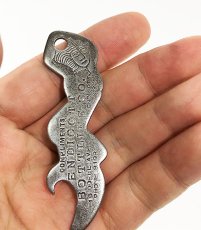 1900〜20年代頃のアドバタイジング入りボトルオープナーです。穴があるので、キーリングにそのまま付けて持ち歩きできます。