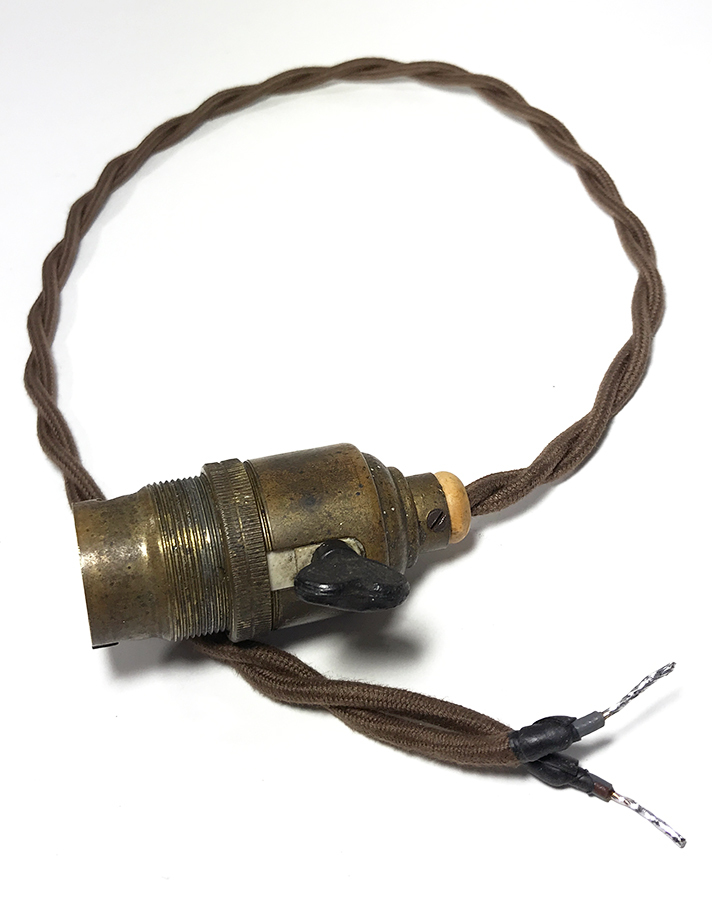 1920〜30年代頃のフランス製の、 "裸電球" 用ブラスソケットペンダントです。見るからに古いソケットですね。