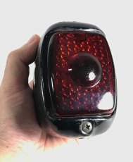 製造年代は1950年代といったところなのでしょうか。本来はトラックなど車などについていたものなのかもしれませんが、ナンバー灯としてのクリアのガラスレンズが上部にあるためハーレーの、ボバー系、チョッパー系カスタムバイクのテールランプにもってこいですね。