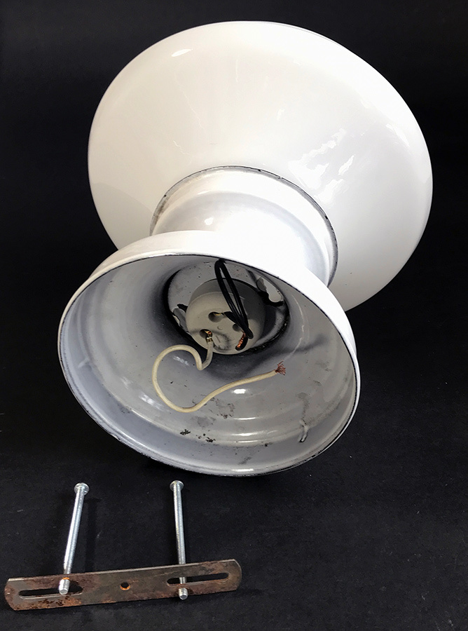 内部の磁器製ソケットは比較的新しいものに交換されておりますので安全です。設置の際のブラケットはオリジナルです。