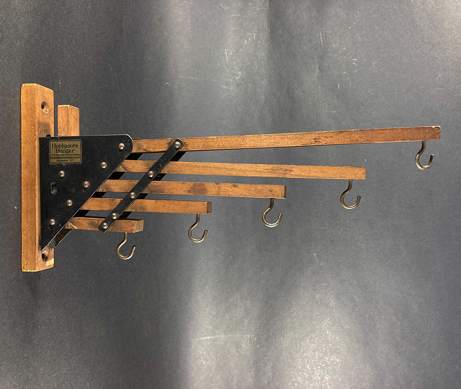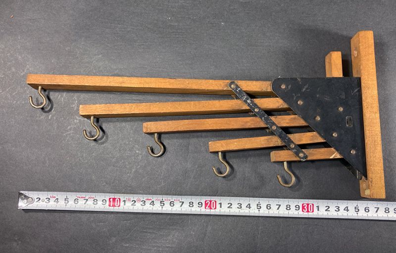 1920〜30年代の、木&鉄製(黒塗装)壁付け折り畳み式ハンガーラックです。