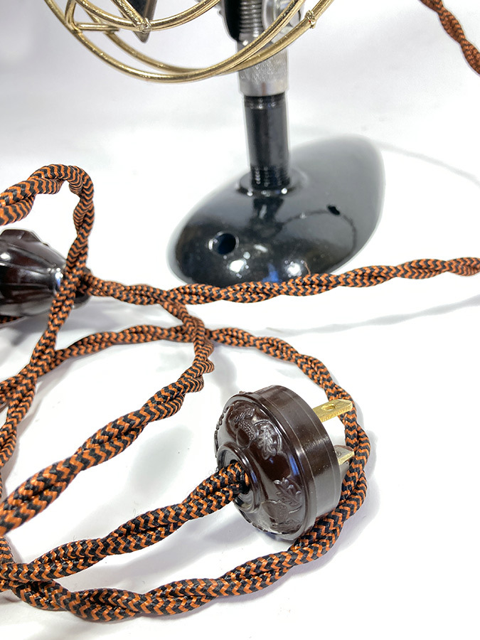 最後の画像でお分かりになります通りアメリカの扇風機専門のレストア会社にて、布巻きコード(2m)や >> コンセント はもちろん、コイルも含めたモーター系のパーツに至るまで全て完全にバラされ、交換、内部の洗浄、グリースアップはもちろん、小さいワッシャーに至るまで必要なものは交換されており、まさに “新品” の状態となっております。