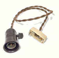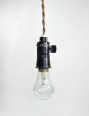 1950〜60年代頃のフランス製の、 "裸電球" 用ソケットペンダントです。パドルスイッチによるON/OFFが可能です。ソケットのボディはこげ茶のベイクライト製で、サイズさえ合えばお好みで(フランジ部分を外して)シェードを取り付けていただくことも可能です。
