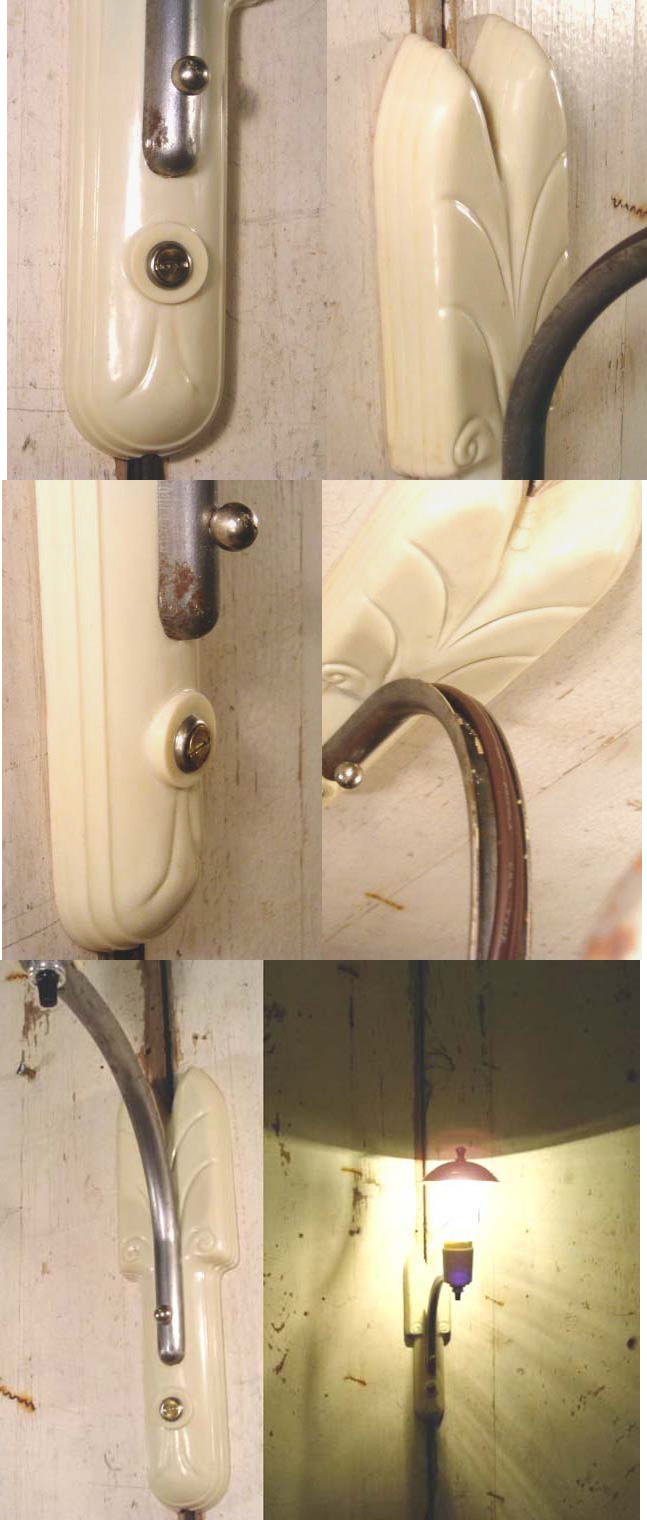 1930〜40年代頃の壁付けランプです。アイボリーベイクライト×スチールアーム×スチールシェード(キャップ式)です。
