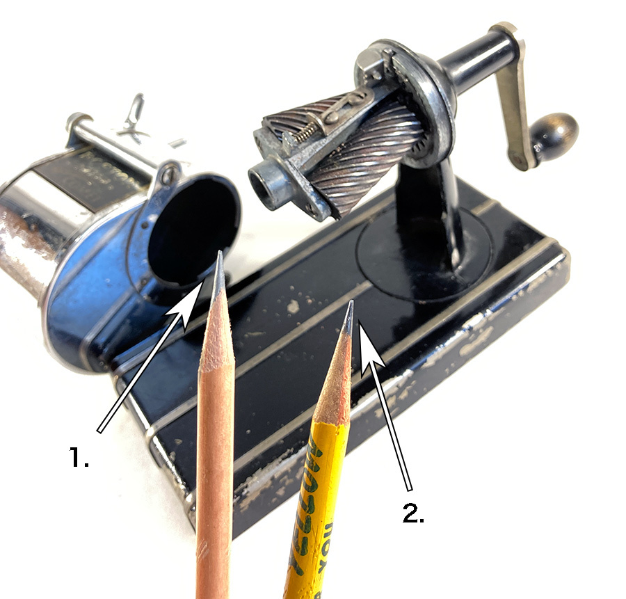 現代の物と同じで、オートマチック式なので鉛筆を勝手にホールド&プッシュして削ってくれます。