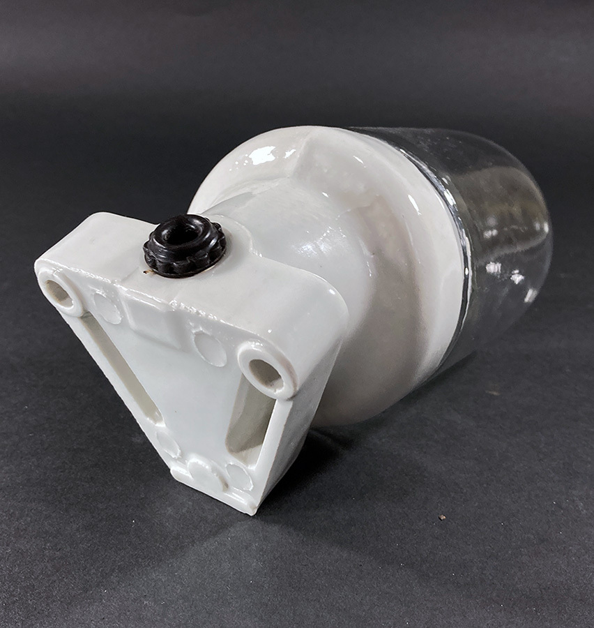防塵ガラスの先端部にスレなどあるもののコンディションは問題なく、古い防塵ガラスなので小さい気泡が入っていたり表面が波打ってますので、クリア電球で点灯すると雰囲気があります。