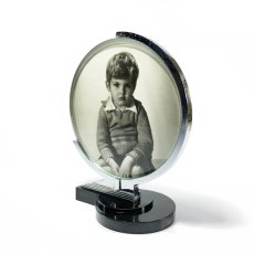 ベークライト × シルバークロムメッキ・フレーム(当時 “Dura Metal” と呼ばれていた真鍮系?の金属キャスト)の両面使いが出来る "フォトフレーム" です。この丸型は2回目となる、中でも珍しいモデルです。