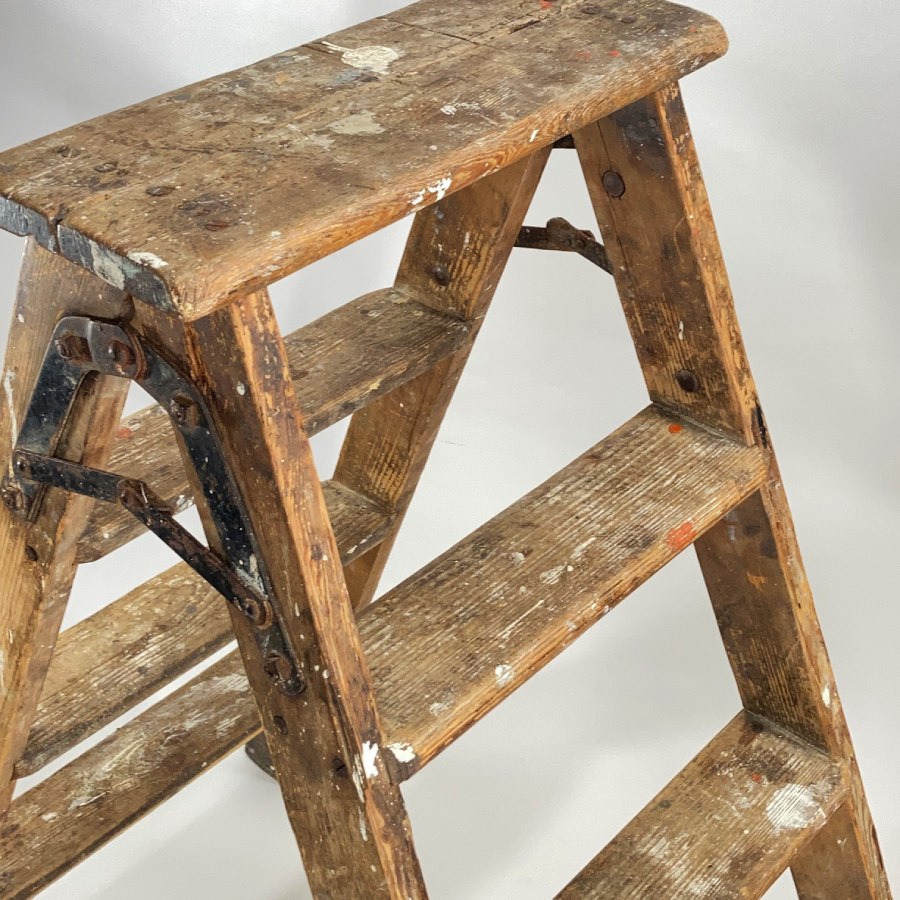1900-20's “Shabby Chic” German Wooden Stepladder