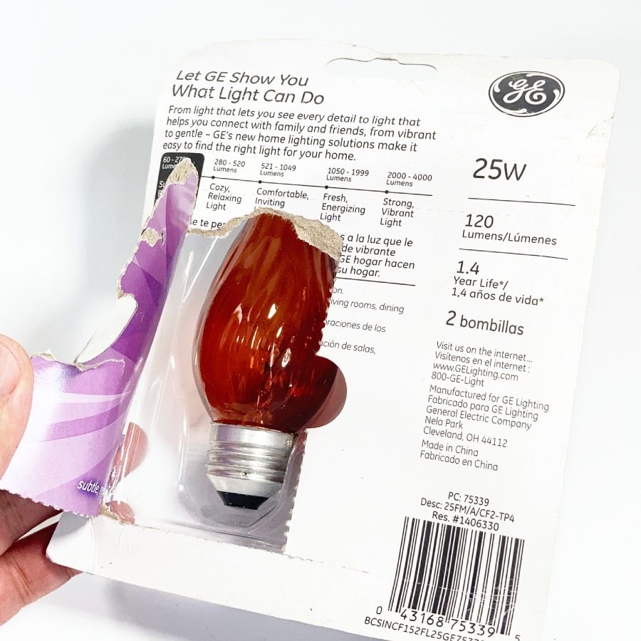 日本ではこの手の、『火』をリアルに取り込んだデザインの電球は手に入らないので、アメリカより直接輸入した【General Electric】社の正規品で、アメリカの現行品となります。