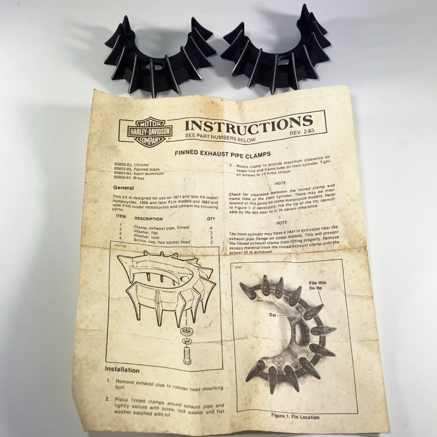 【N.O.S.】Vintage Harley Davidson Shovelhead Finned Exhaust Pipe Clamps