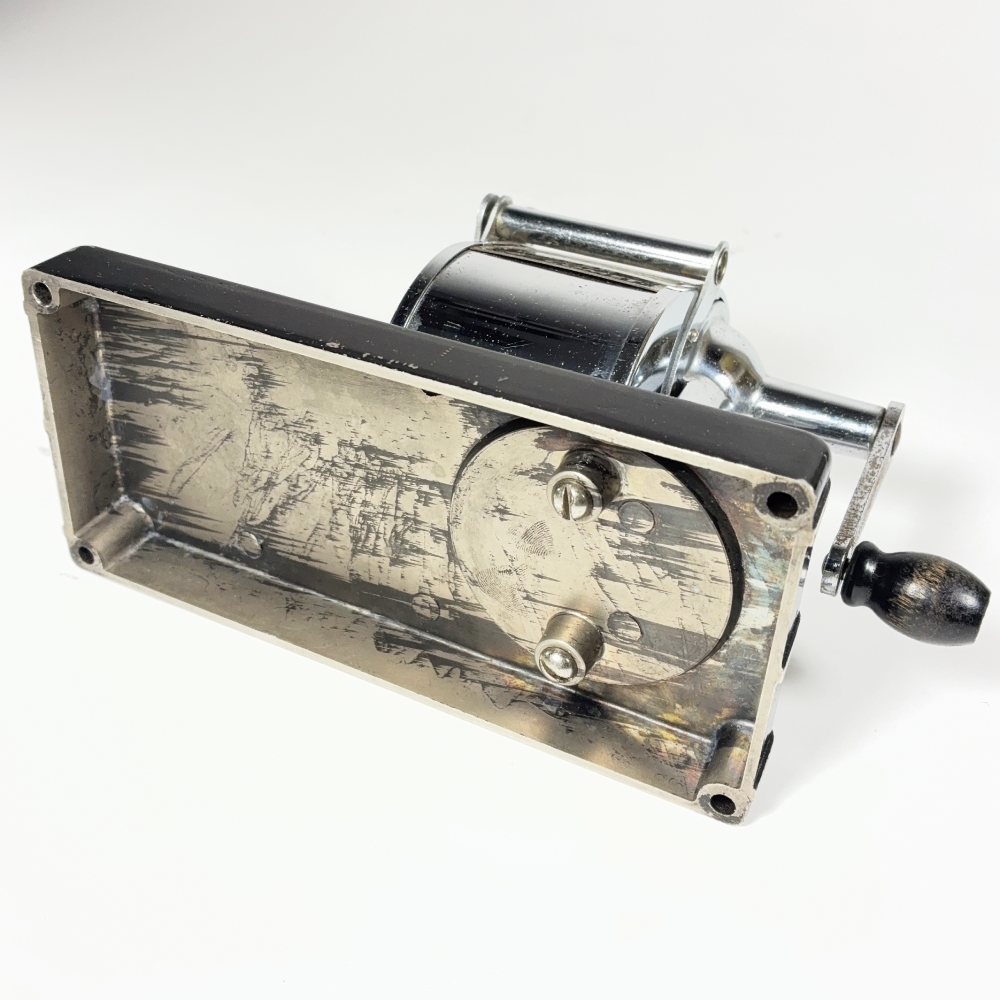 クランク・ハンドルのエンド部は天然木に黒塗装です。経年によりかすかに木目が現れており、大変良い雰囲気です。