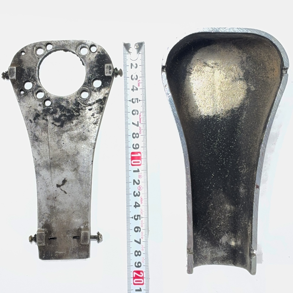 バックプレートも、その造りから見てもオリジナルです。吸気用に縦長の逆三角のくりぬきが施されているものをよく見かけますが、それはそれとして、開いてないないオリジナルのバックプレートもあるそうです。