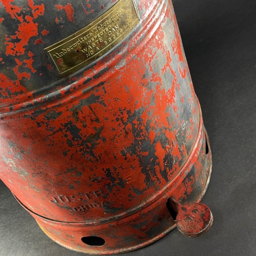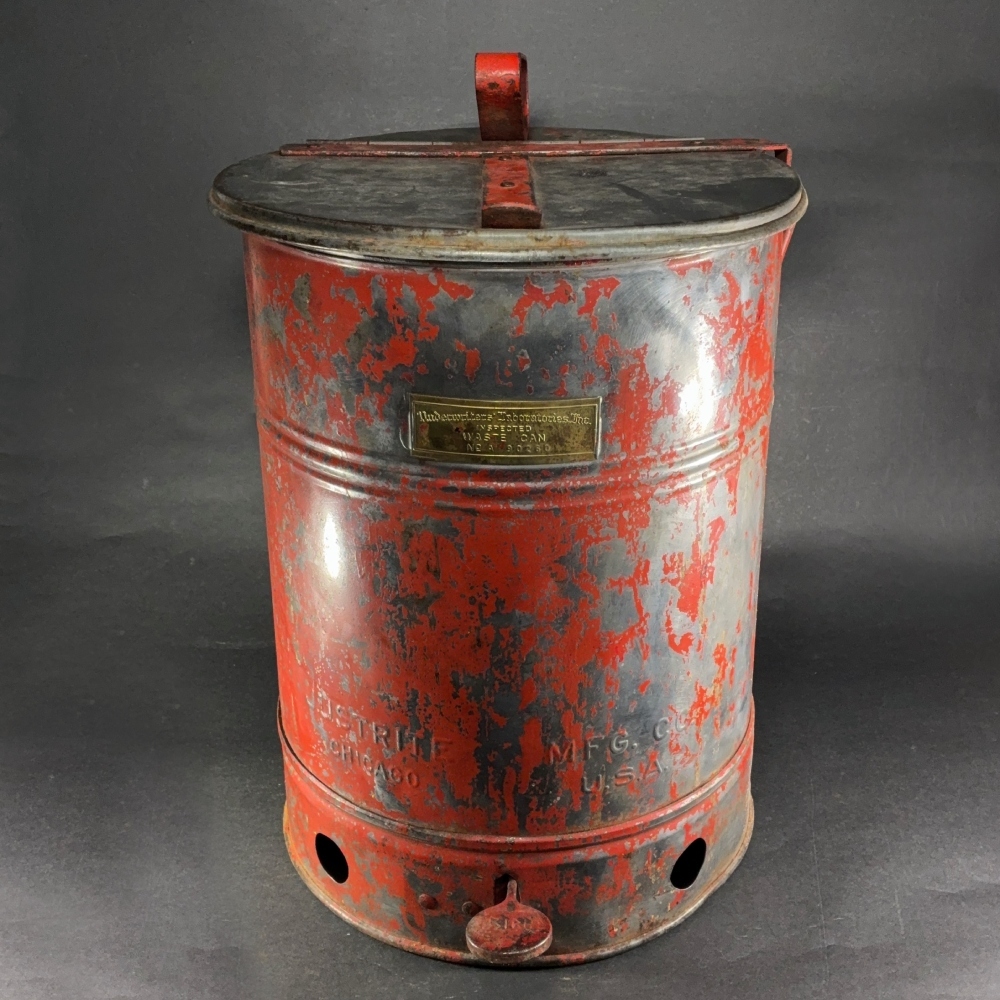 1930〜40年代【JUSTRITE MFG CO.CHICAGO】製フタ付き "寸胴" ゴミ箱です。