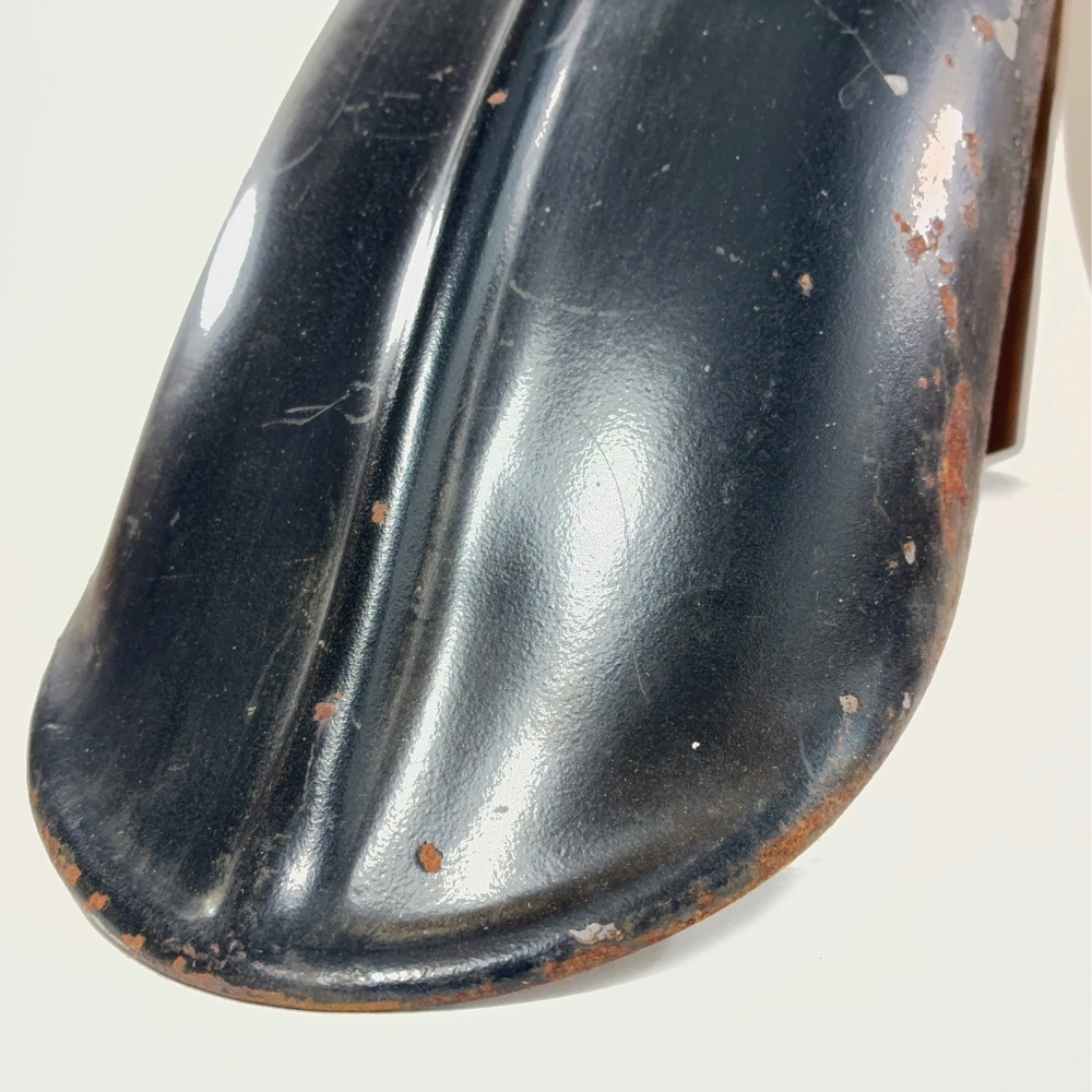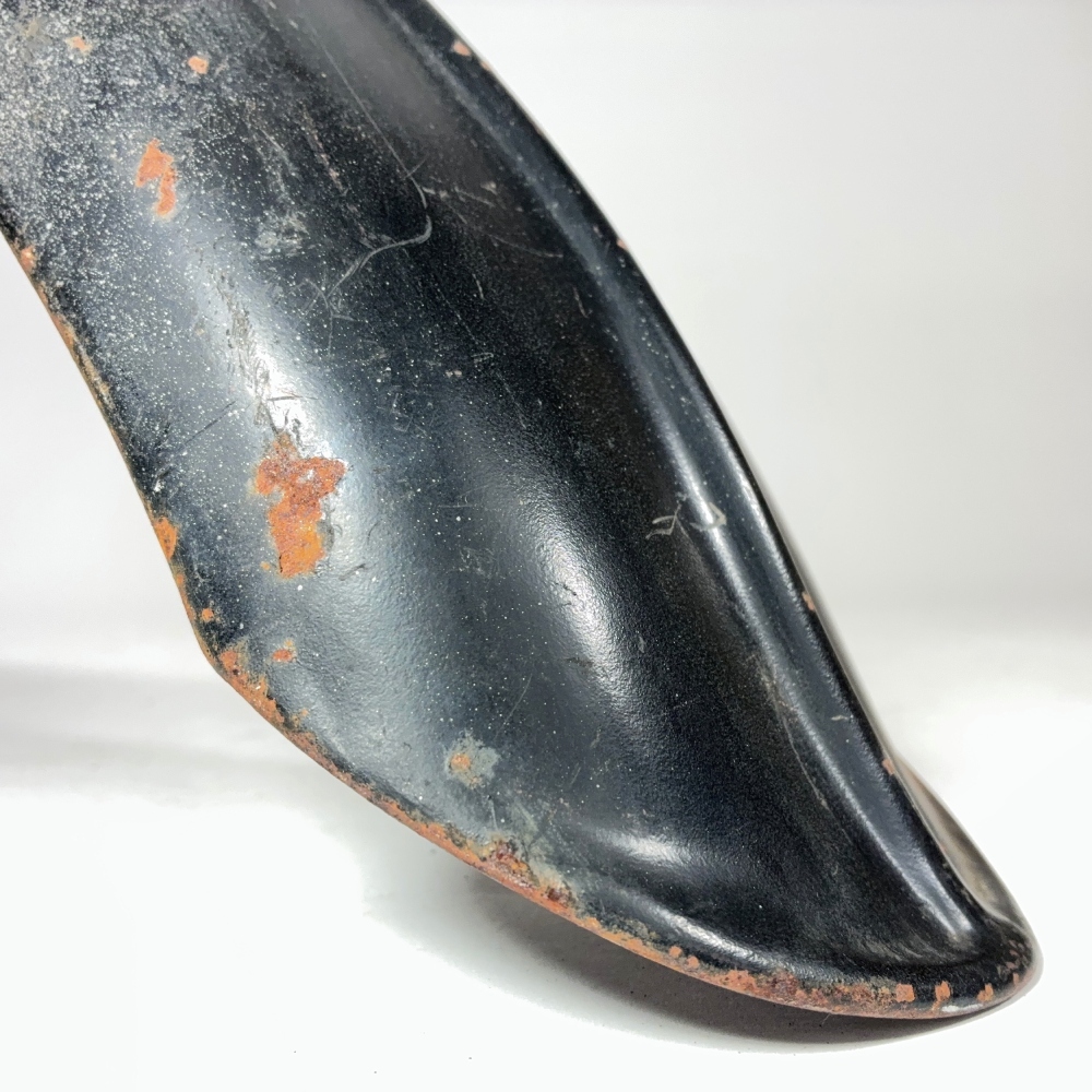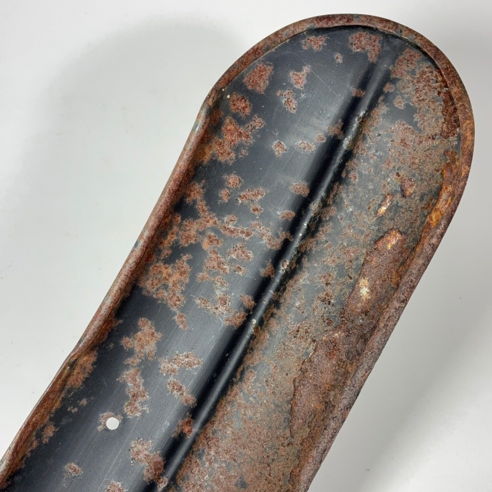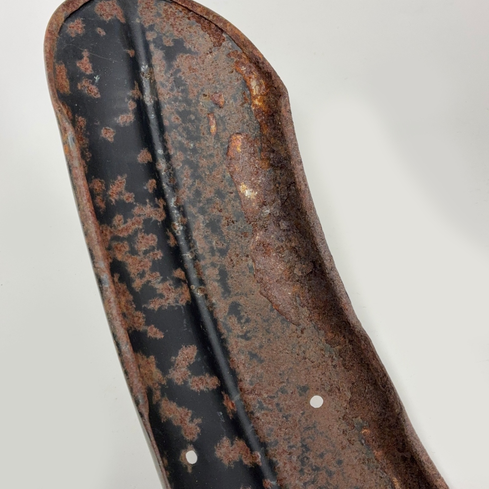 1960年代頃のWASSELL(ワッセル)社製のリブフェンダーで間違いない。という事でアメリカの専門ディーラーから買い取り、私自身もエンド部の反り方、形状など見るとWASSELL社製のオリジナルだと思うのですが、MADE IN ENGLANDの『刻印』という確証が無いです。