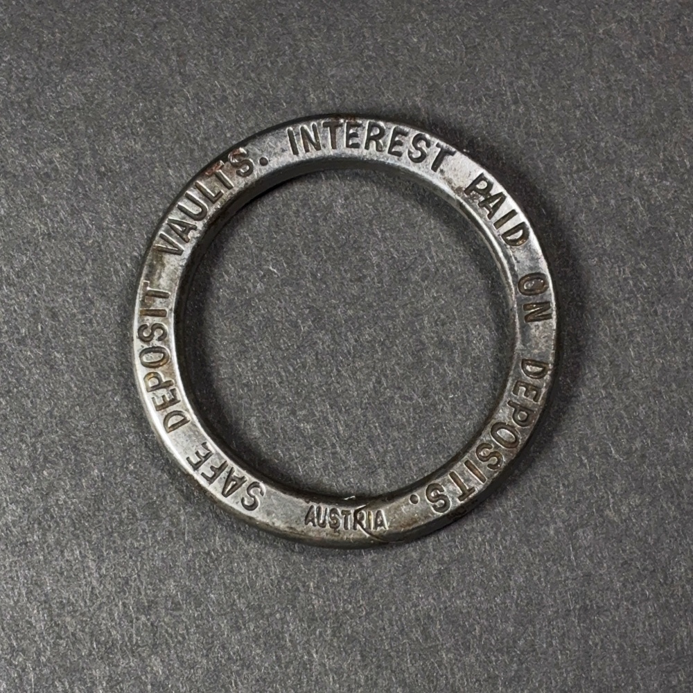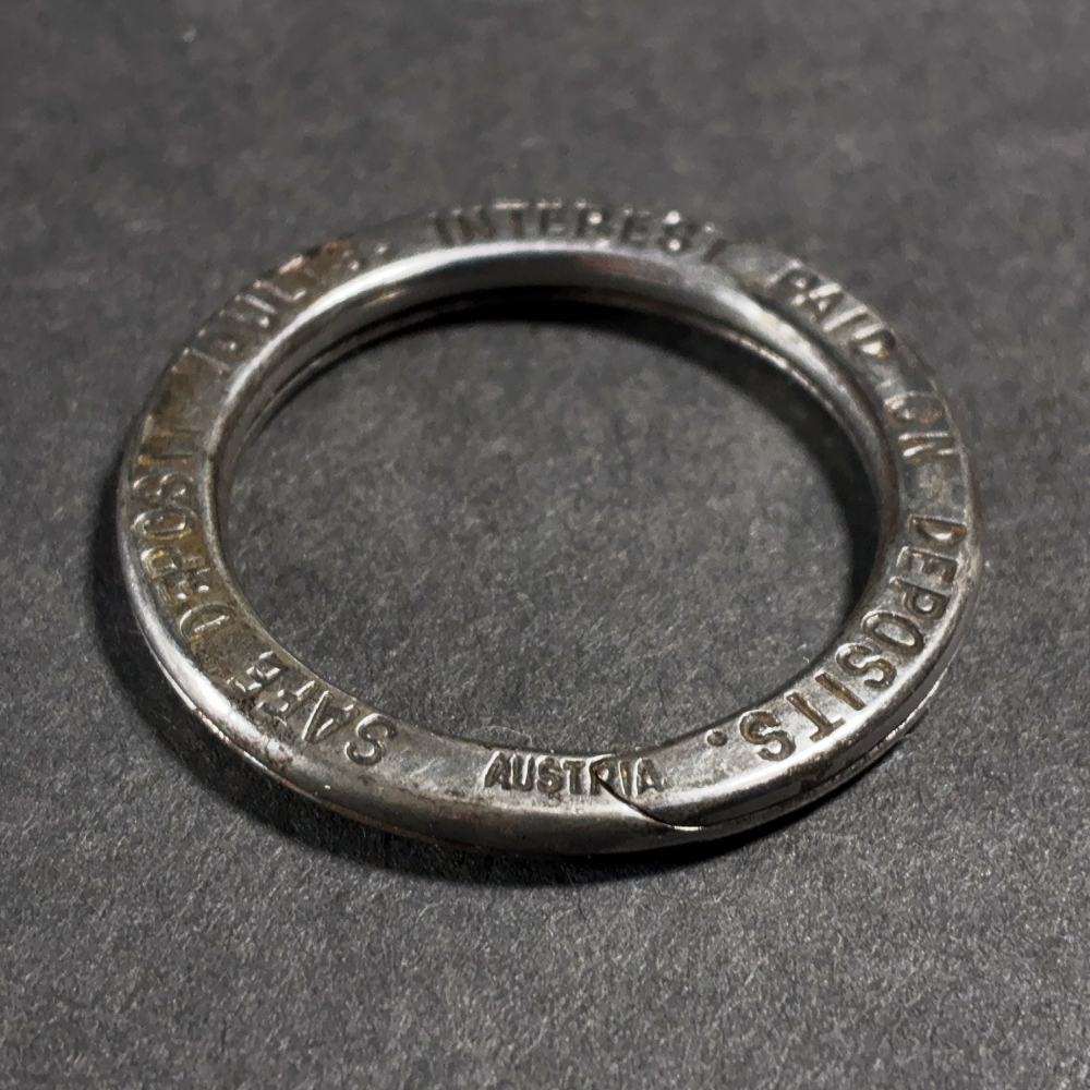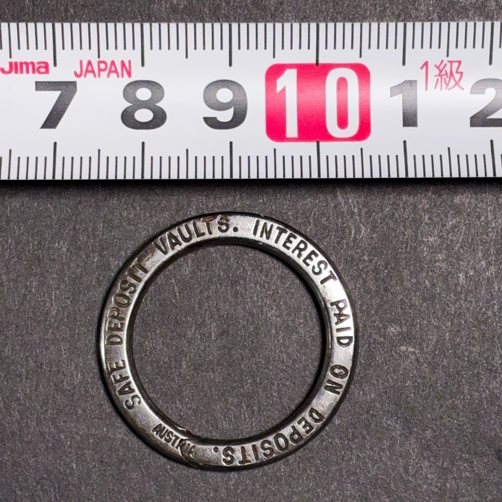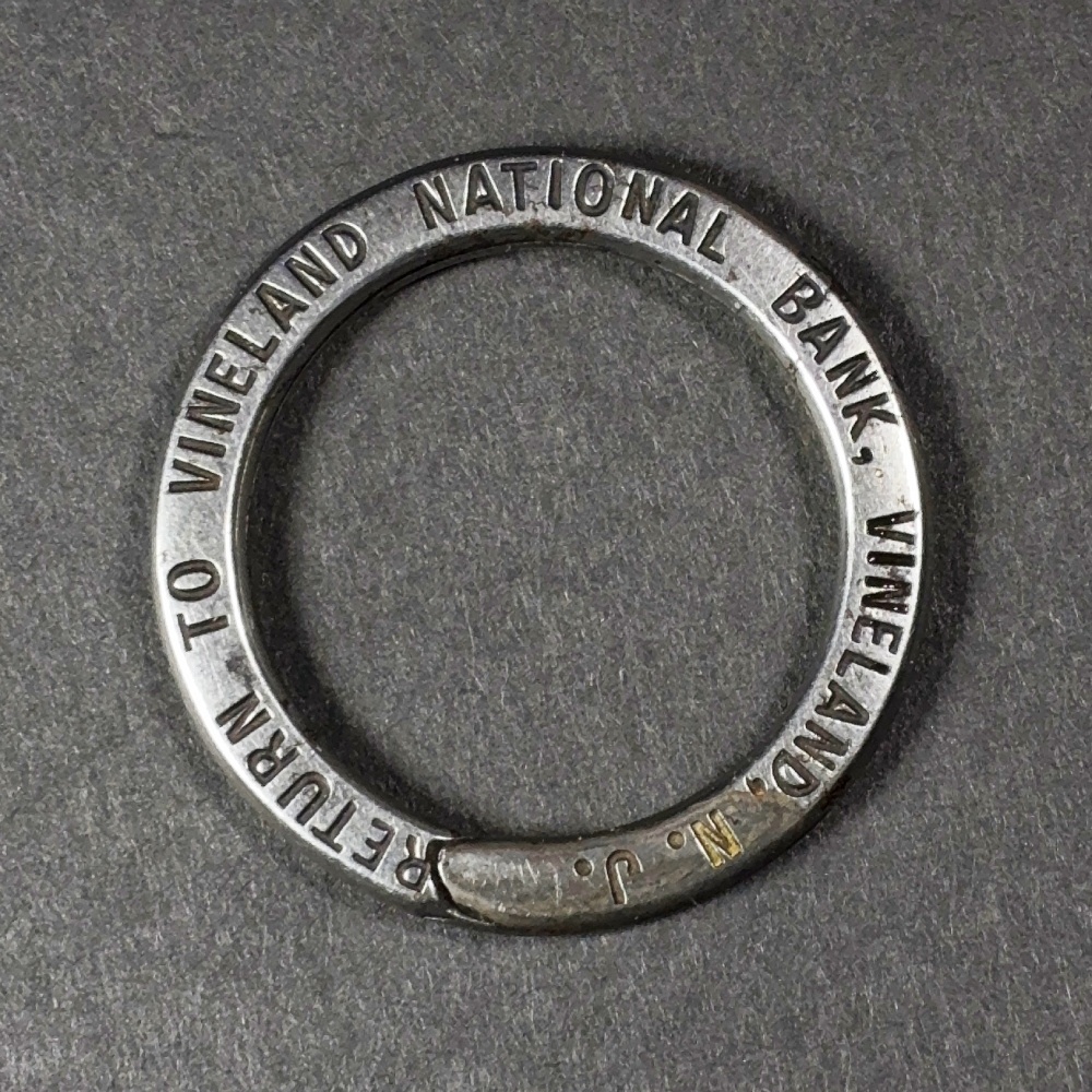 1920〜30年代頃のアメリカの銀行【Vineland National Bank】のアドバタイジング入りキーリングです。