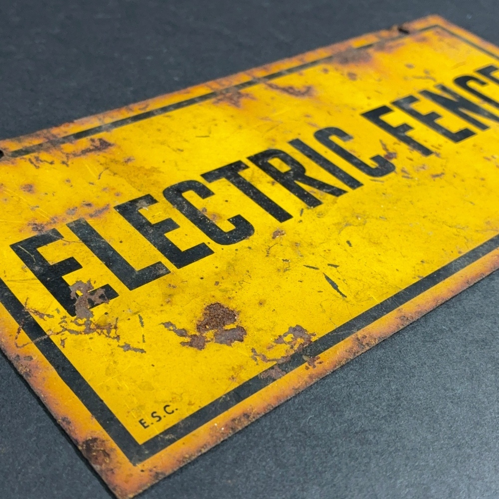 1960's Rusty ⚡️ELECTRIC FENCE⚡️ Vintage Tin Sign