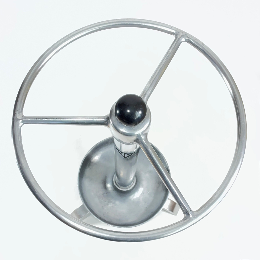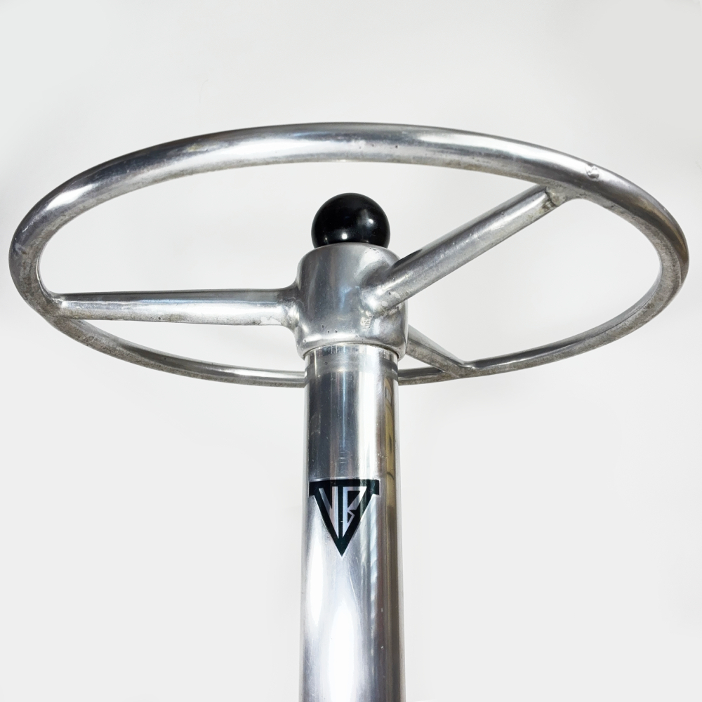 個人的にはこの製品がどこの会社なのかわからないのですが、見れば納得なこのロゴデザインや、全体的なフォルムといいアールデコ期の流れを汲んだ当時らしいデザインで、無機質なアルミの質感と相まって非常に存在感があります。もちろんリプロではなく当時物です。