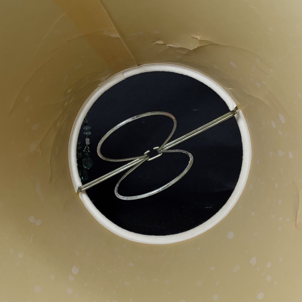 シェードの裏側がプラスチックコーティングがされているのですが、このプラスティック部が、裏側から見ると部分的にかすかなヒビがあったり、ドット状のシミなど経年程度のダメージはありますが、特に表にも響いておらず、今後の使用にも問題ないレベルです。全体的にみても非常にコンディションは良好です。。