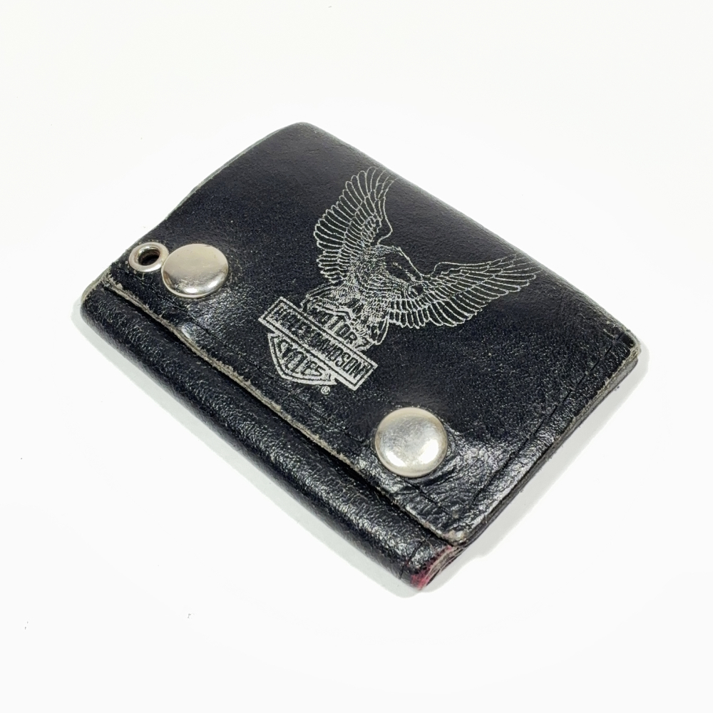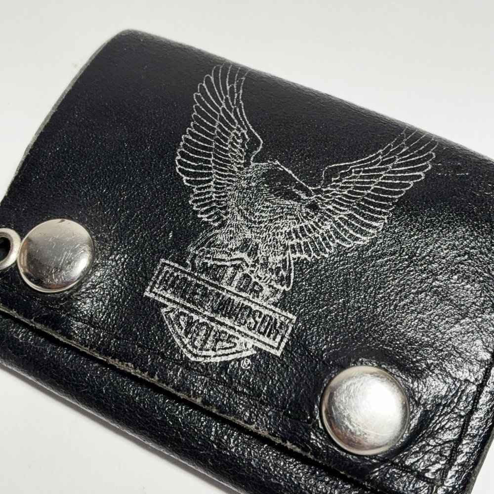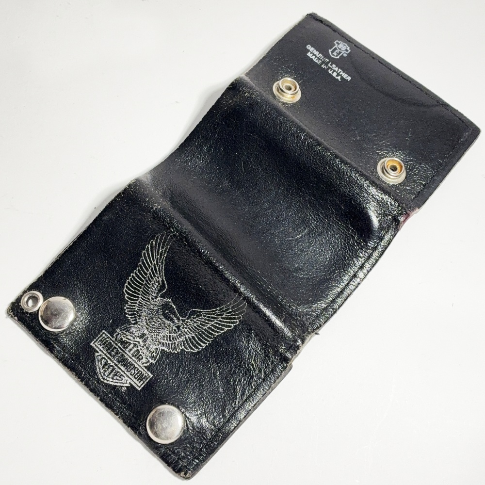 1990's ☆Harley Davidson☆ Eagle Black Leather Tri-Fold Snap Button Wallet