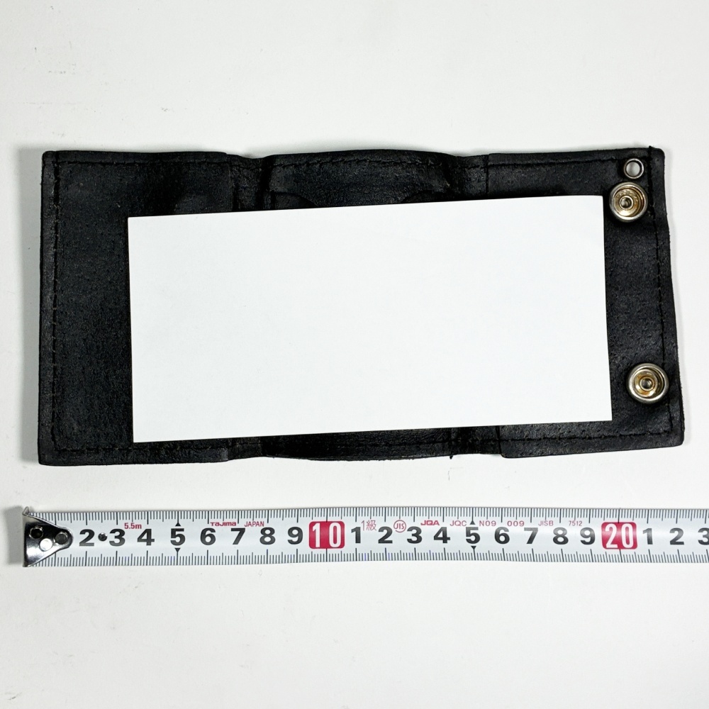 サイズは小さいながら一万円も入り、カード(小銭は無理やりスナップ裏など)などちゃんと整理できます。(*最後の白い紙は1万円札と同サイズです)