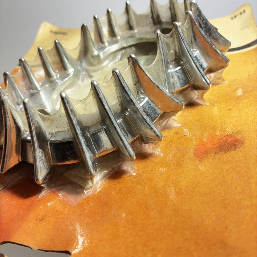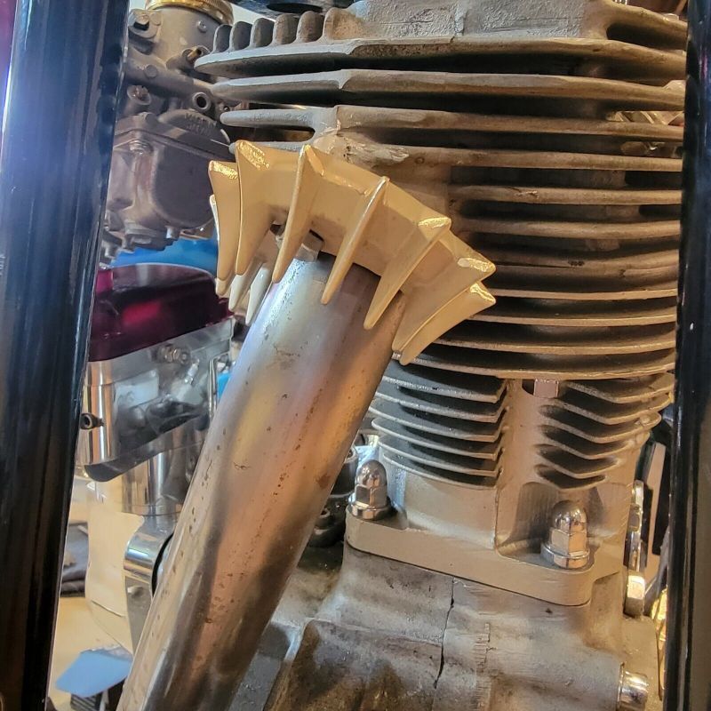 エキゾーストフランジ部分に取り付けする シャークティース(サメの歯)スタイルのドレスアップパーツとなります。ご自身のチョッパーにいかがでしょうか。