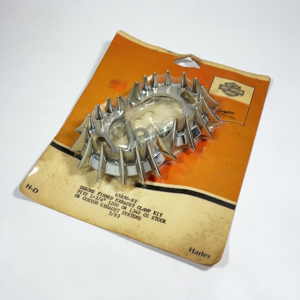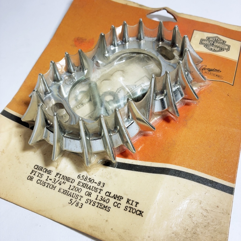 ⚡️N.O.S.⚡️Vintage Harley Davidson Shovelhead Finned Exhaust Pipe Clamps