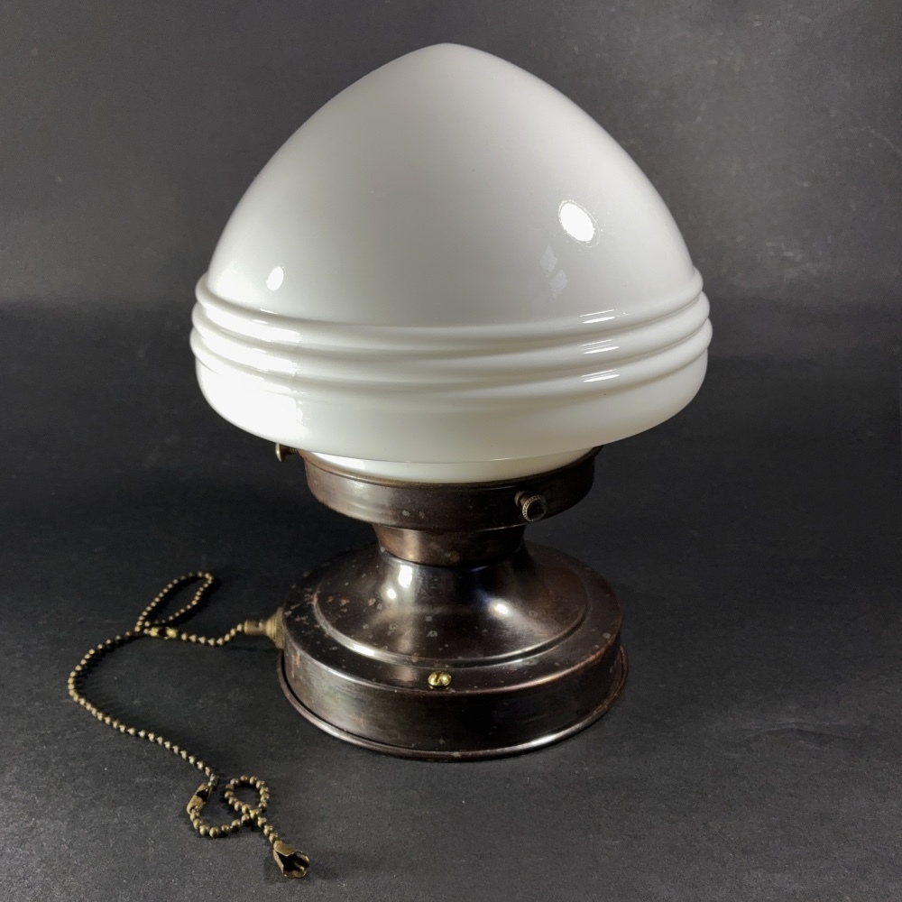 ミルクガラスシェードは当時物らしいリブデザインで、非常に存在感がございます。