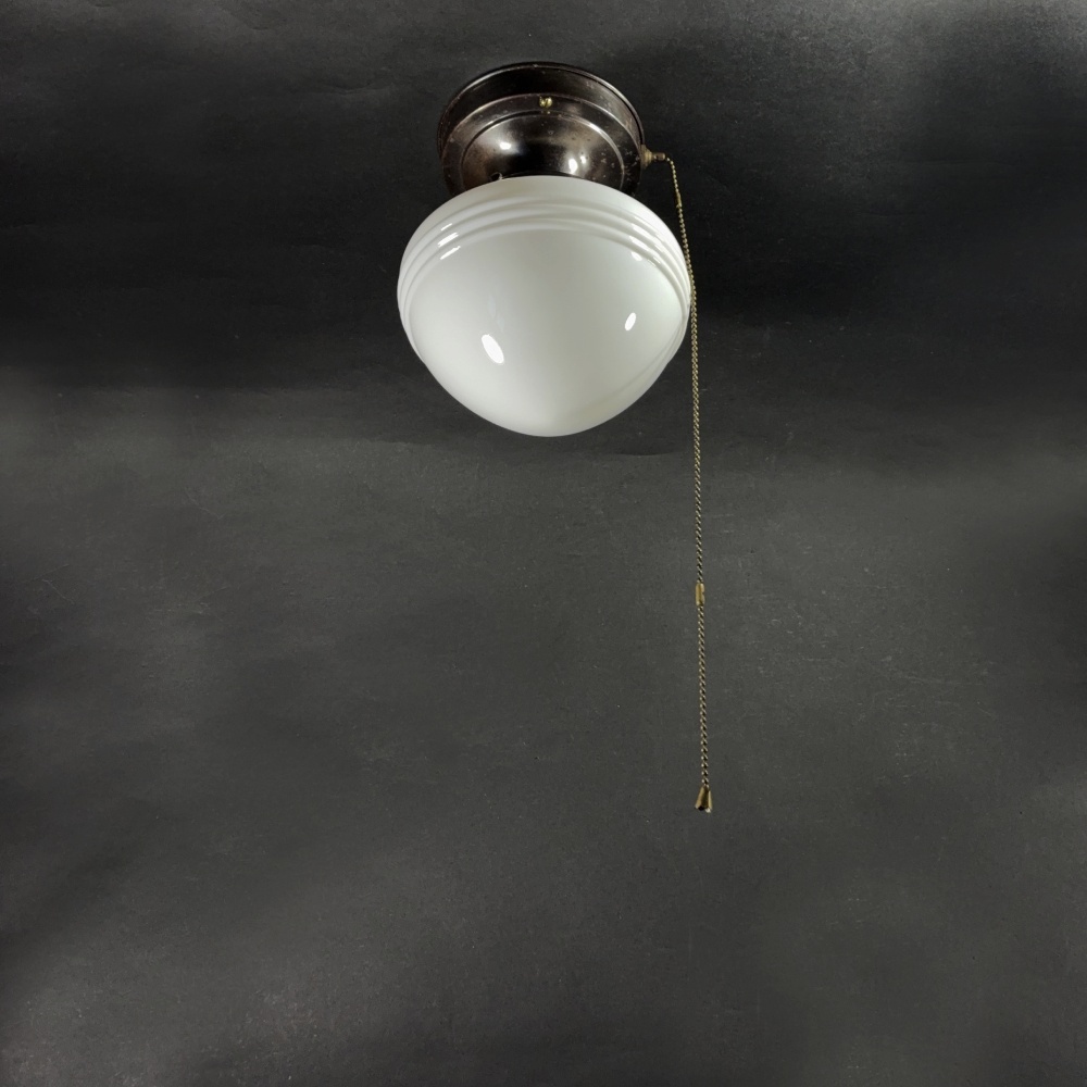 1920〜30年代頃のアメリカ製ミルクグラスシェード × 鉄製ベースのシーリングライトです。