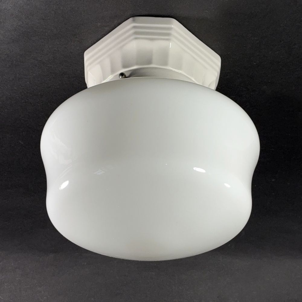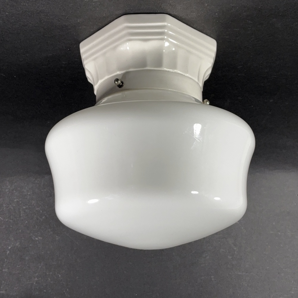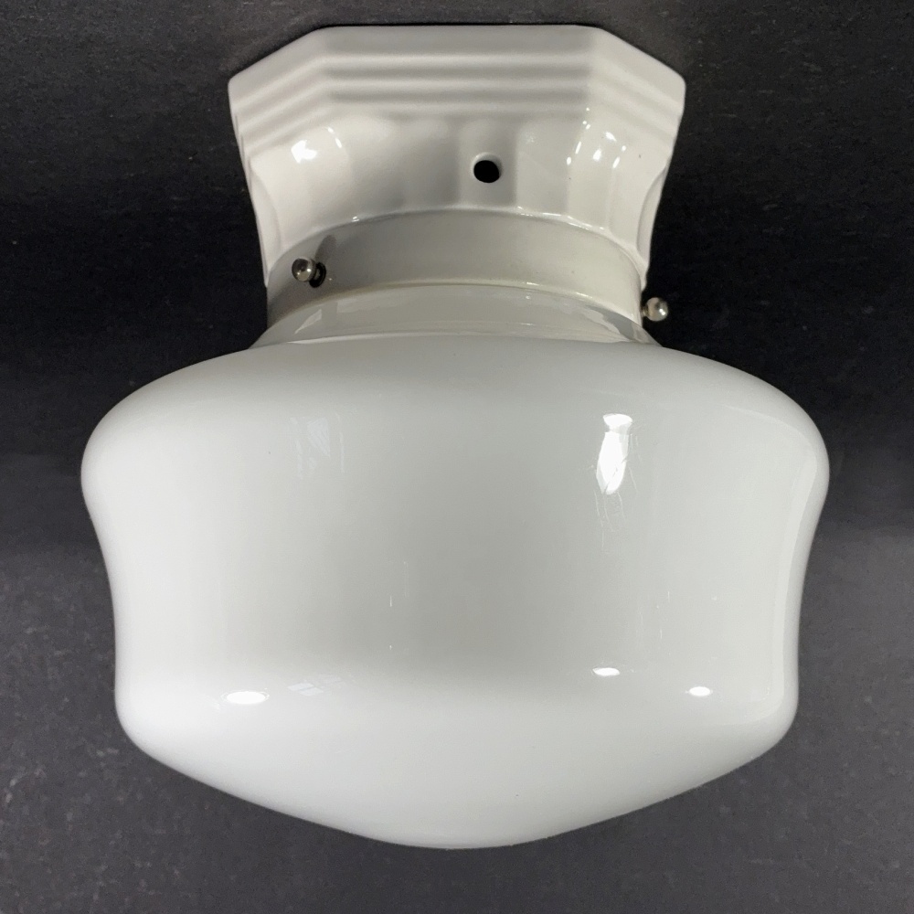 ★Milk Glass & Porcelain ★ 1920-30's School House Ceiling Light