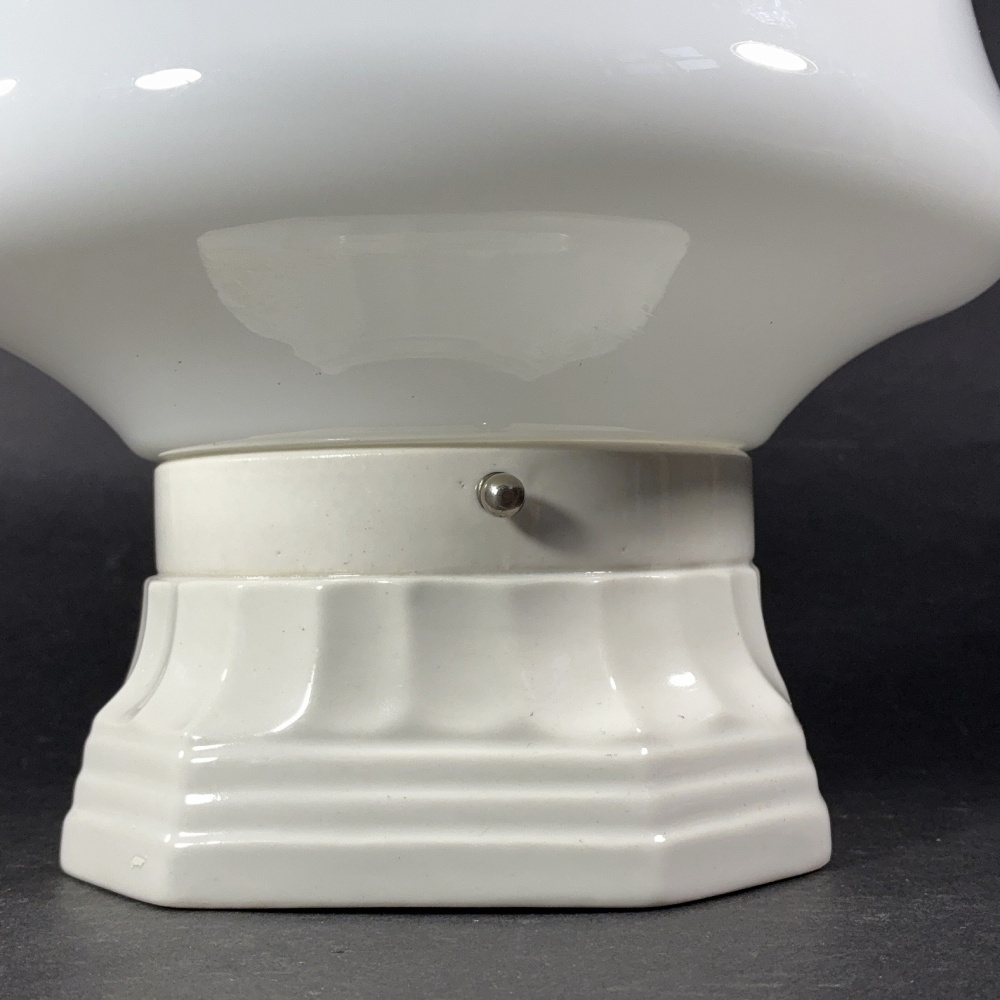 1920〜30年代頃のアメリカ製【ミルクグラスシェード×磁器製ベース】のシーリングライトです。