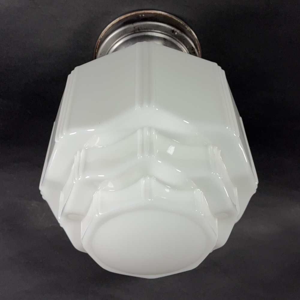 ミルクガラスシェードはゴリゴリのアールデコ期らしいデザインで、大変レアな個体です。