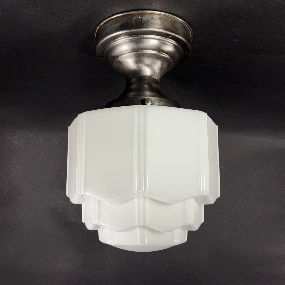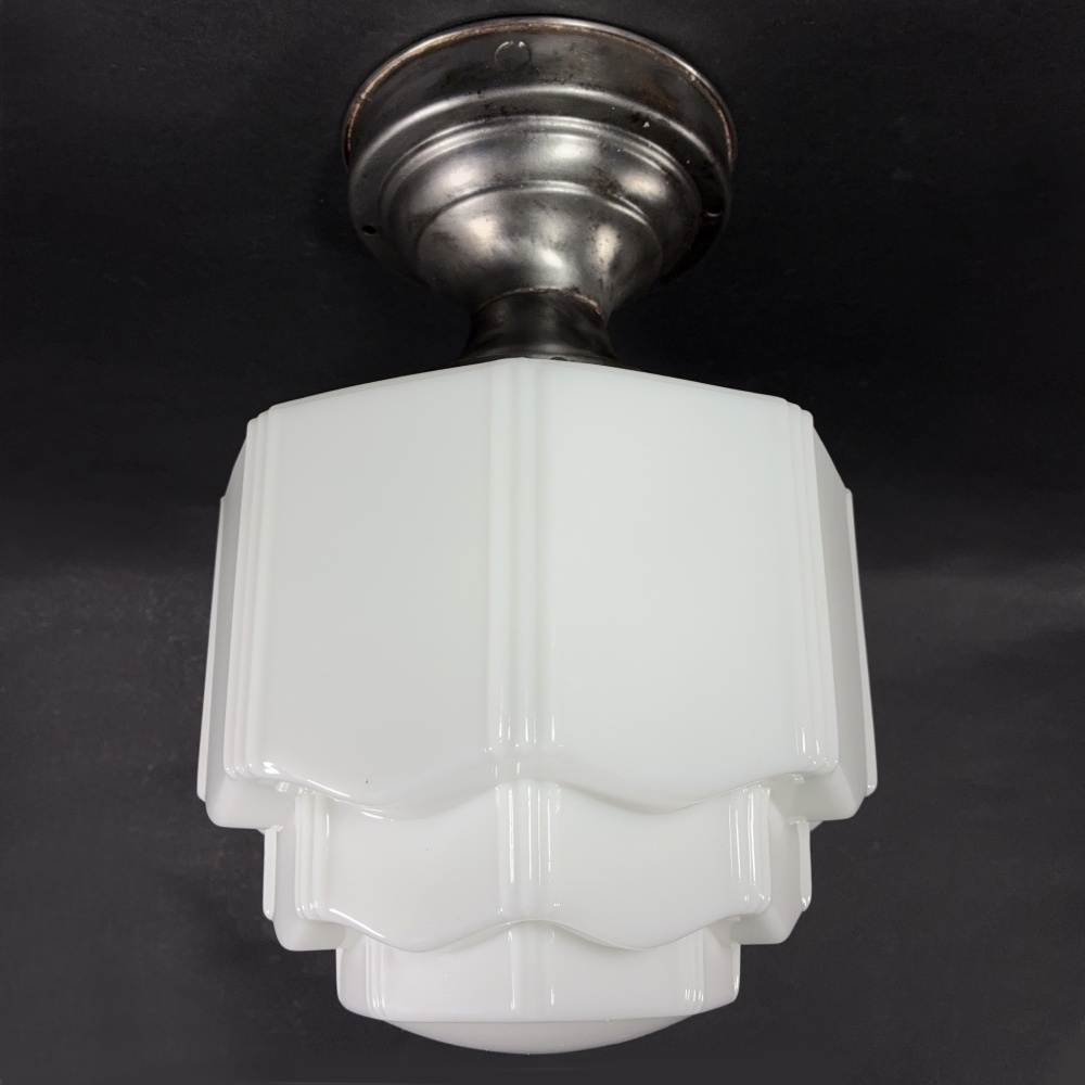 ★ Skyscraper ★ 1930's Milk Glass Ceiling Light
