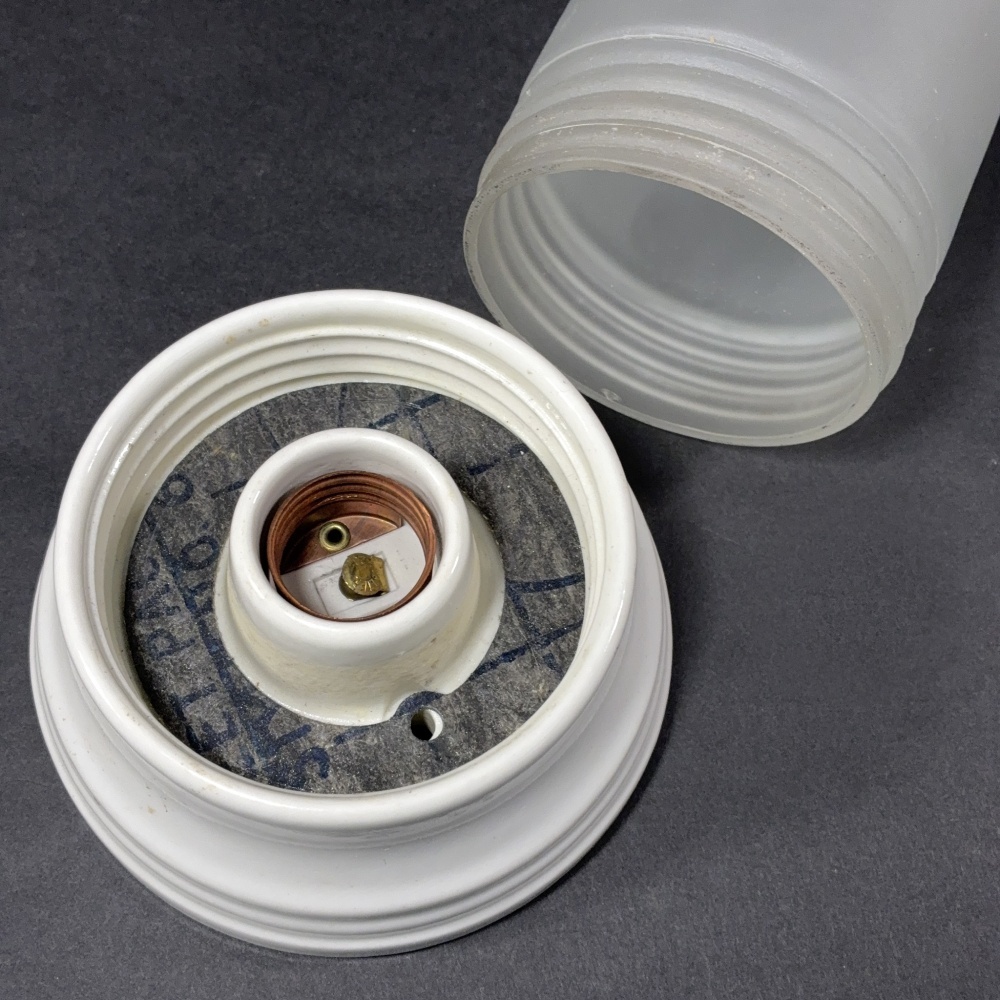 ベースは磁器製で、ガラスシェードは曇りガラス。
